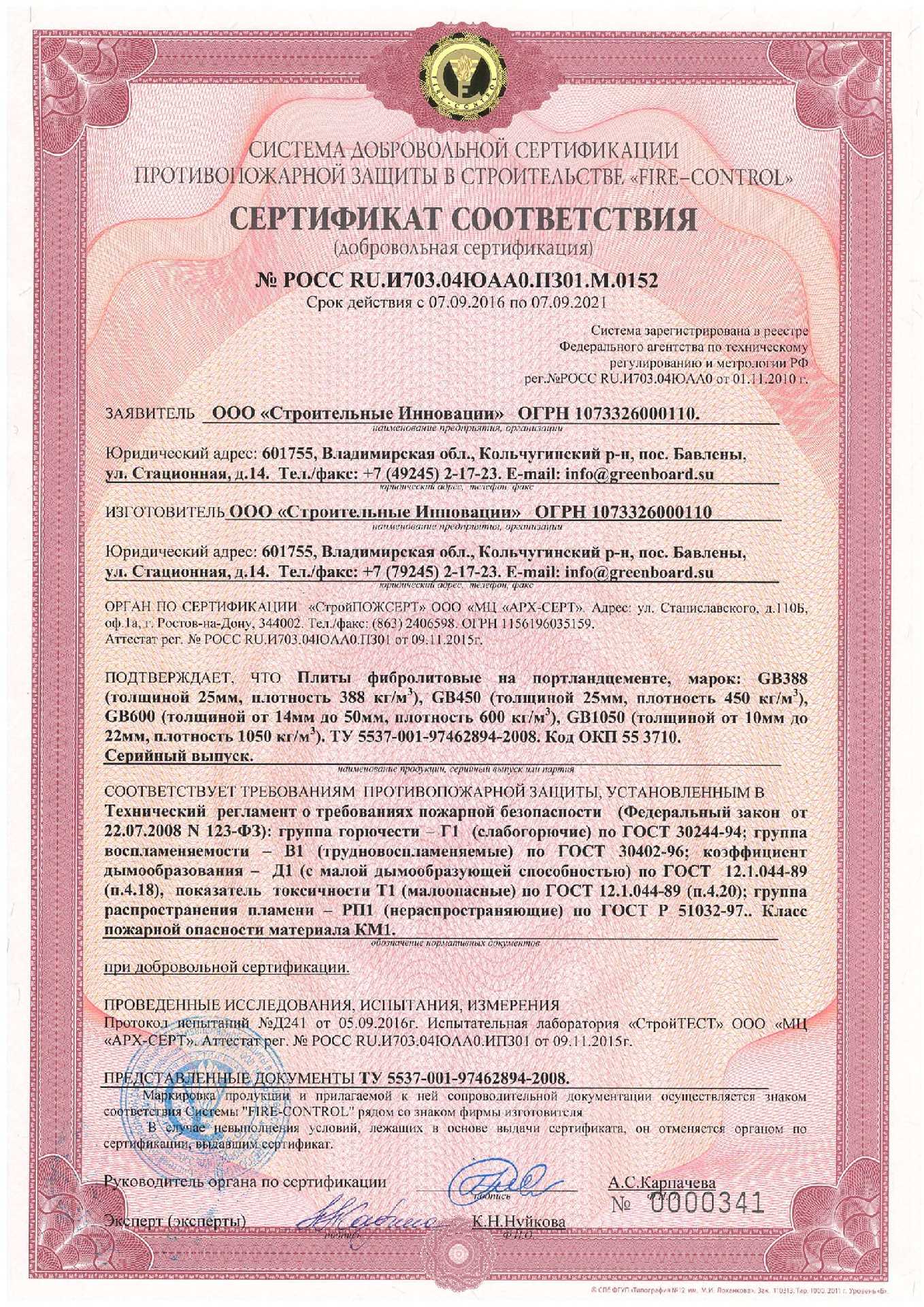 | Состав | древесина 60%, серый цемент 39,8%, силикат натрия (жидкое стекло) 0,2% |